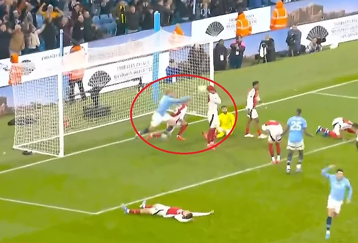 Когда «Ман Сити» в самом конце забил спасительный гол, Холанд на радостях запустил мяч в затылок Габриэлу.