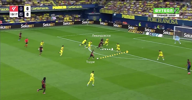 Например, в эпизоде с первым забитым мячом. Однозначно необходимо отмечать действия Пабло Торре: просто невероятная и по идее, и по исполнению передача на Левандовского. Но также важно отмечать то, как была создана подобная ситуация. Пабло Торре оказался совершенно свободным перед чужой штрафной.