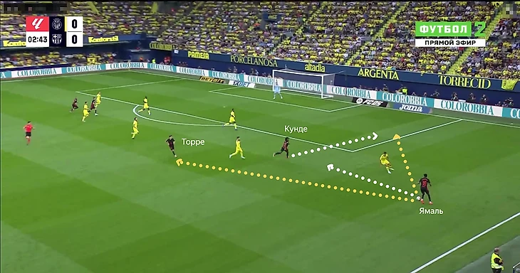 Уже не в первый раз можно отмечать уровень отлаженности взаимодействий между Ламином и Жюлем. Ямаль уже давно приучил к своей яркой и зачастую эффективной игре. Кунде сильно спрогрессировал на позиции правого защитника (уже полноценно адаптировался к когда-то новой для себя роли).
