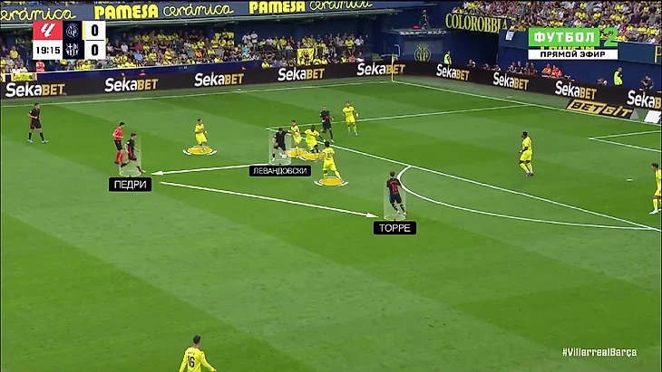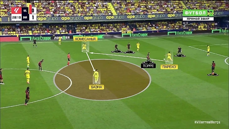 Из-за необходимости отыгрываться игра «Вильярреала» без мяча стада несколько архаичной – перед голом Торре каталонцы провели затяжную атаку, где сразу несколько игроков успешно получали мяч между линиями. «Барса» получила свой любимый режим игры – созидая и комбинируя через центральную зону: