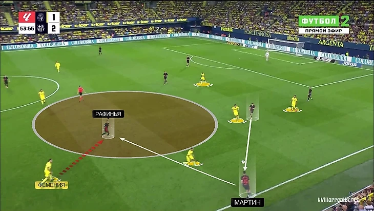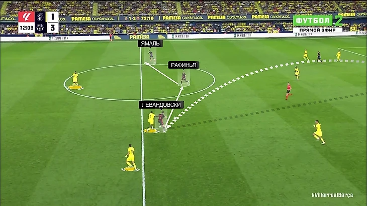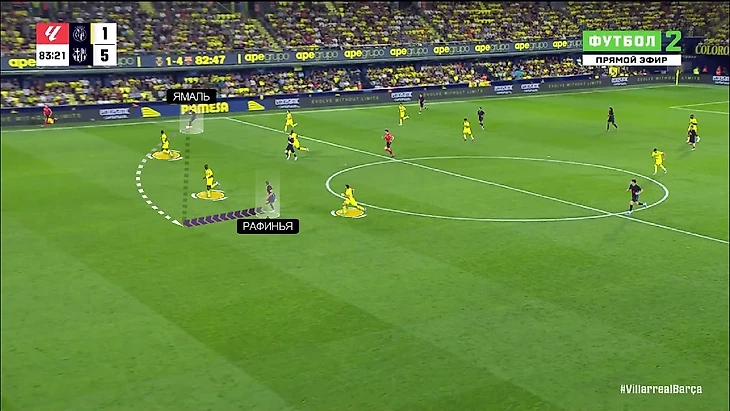 Оставшийся отрезок после этого гола «Барса» владела мячом 58% времени (до него было 68%), но выиграла по ударам 7:1. Теперь можно было наказывать «Вильярреал» на пространстве, чем с удовольствием Рафинья и Ямаль занялись: