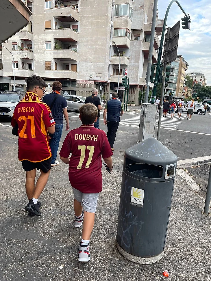 Второе наблюдение — теперь в толпе периодически видно майки с 11-м номером. Видимо, гол Довбика в ворота «Дженоа» позитивно сказался на продажах атрибутики с его фамилией. До этого воскресенья я не видел ни одного человека в футболке украинца.