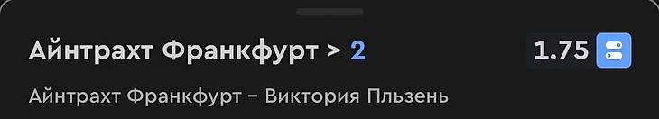 Виктория Пльзень же игрок чешского чемпионата, и сравнивать эти два чемпионата не представляю возможным. Одно дело играть против Спарты Праги а другое против топа из Бундеслиги. При том что и в своей лиге Виктория всех не разносит беру тут : Индивидуальный тотал Айнтрахта 2 больше за 1.70