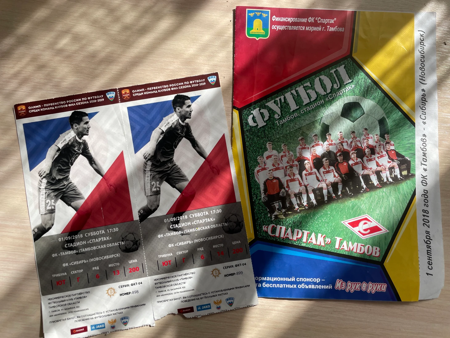 Лето 2018 стало вообще лучшим в плане футбольных воспоминаний. Весь год мы с родителями готовились к этому, потому что нас ждала поездка в Волгоград на ЧМ. Я уже грезил футболом и был без ума от самой мысли, что мы поедем на главный турнир мира. И вот мы посетили матч Египет : Саудовская Аравия, где неожиданно победили саудовцы. Эта поездка запомнилась мне надолго; пока я находился там, меня не покидало ощущение большого праздника. В то лето я попал еще и на матч московского Спартака в РПЛ. Он тоже запомнился надолго. Но после таких крутых впечатлений, я все равно ждал похода с папой на небольшой и уютный стадион «Спартак» в центре Тамбова. И вот, наконец-то, в праздник 1 сентября, мы с папой сходили на ФНЛ «Тамбов» «Сибирь». Для меня каждый матч в Тамбове ощущался как небольшой праздник. Этому способствовало хорошая посещаемость и чувство, что все стекаются в одно место. Игра получилась очень насыщенной. Первым забила «Сибирь», я занервничал, очень хотел победы родной команды. Но во втором тайме на сцену вышел тамбовский легионер Сенин Себаи, которого на стадионе называли просто Сеня. Он забил два мяча, второй с пенальти. А я достал свой первый телефон и заснял, как Сенин выводит Тамбов вперёд. И испытал экстаз, в порыве эмоций закричал: «Это тамбовский Квинси Промес!». Потому что тогда я еще болел и за московский Спартак, и Квинси был моим любимым игроком. У них с Сенином была похожая внешность, и оба футболиста были атакующими, так что я быстро определился с любимым игроком у Тамбовчан. В конце матча Тамбов довёл счёт до крупного, кстати, голом отметился Хазыр Апаев, известный своими выступлениями за «Факел». После матча я был под мощнейшим впечатлением и еще больше полюбил футбол. Это были очень классные эмоции, отличающиеся от ЧМ и РПЛ, потому что я сходил на свое родное. Дома я убрал билеты и программку в коробку и сохранил как реликвию.