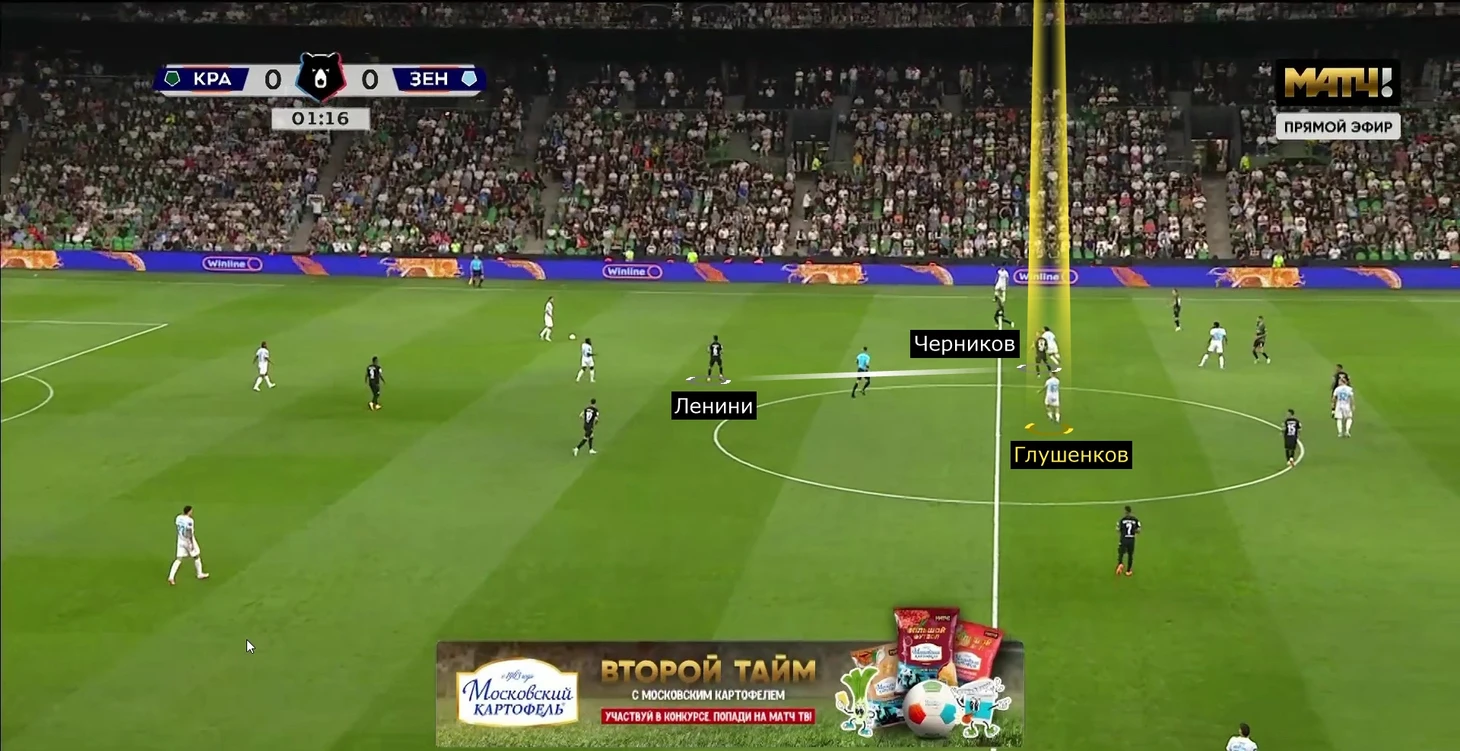 Инструмент – смещения в середину. Зачастую Кевин Ленини и Александр Черников зависали на Венделе и Клаудиньо, оголяя спины. Туда и приходил Глушенков.