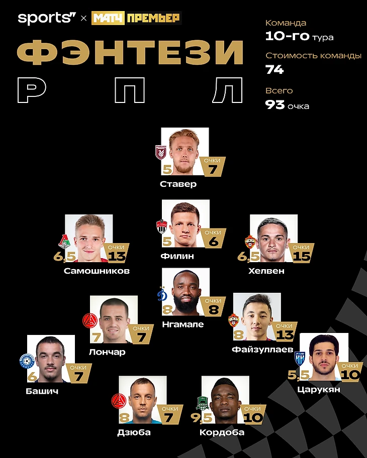 Сборная 10-го тура фэнтези-турнира РПЛ.