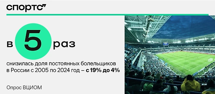 Цифра дня: в 5 раз снизилась доля постоянных болельщиков в России