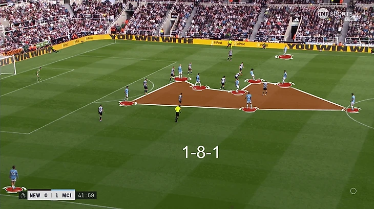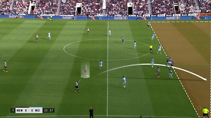 Второе – давление на игрока с мячом. «Сити» слишком часто оставлял без опеки Бруно Гимараэса. Тот мог распоряжаться временем и пространством. В конечном итоге наказал в эпизоде с пенальти, но похожие моменты возникали и раньше:
