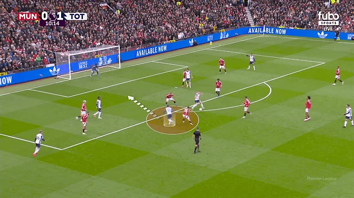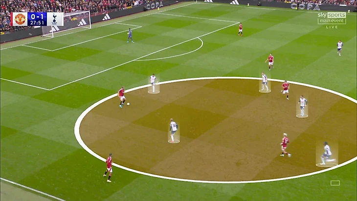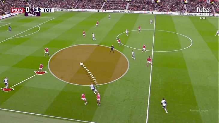 Это радикальный пример того, что парни Энжда Постекоглу делали весь матч – с безумной скоростью насыщали зону мяча, не позволяя «МЮ» выбраться из эпицентра давления.