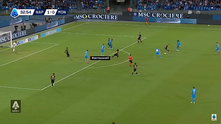 Это движение проламывает обороны. «Монца» пропустила, когда Мактоминей расположился рядом с Лукаку – не хватило защитников, чтобы перекрыть всех.