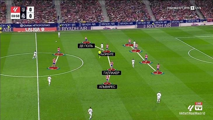 ● справа играл не Льоренте, а Родриго де Поль. Льоренте реагировал на движение соперников и приходил замыкать ловушку;