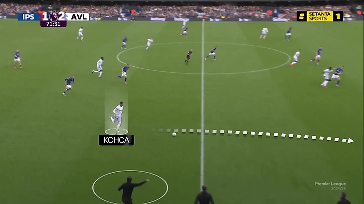 Конса подключился, но потерял мяч. «Ипсвич» наказал, тут же организовав контратаку из его зоны: