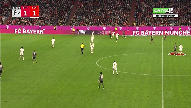Венсан Компани не адаптировал смелую структуру своей команды под матч с «Байером». «Бавария» сыграла как обычно – два центральных защитника плюс Павлович-Киммих для контроля первой стадии; связки крайний защитник-вингер на флангах (один смещается в центр); свободный Мусиала и подбирающий себе роль Кейн.
