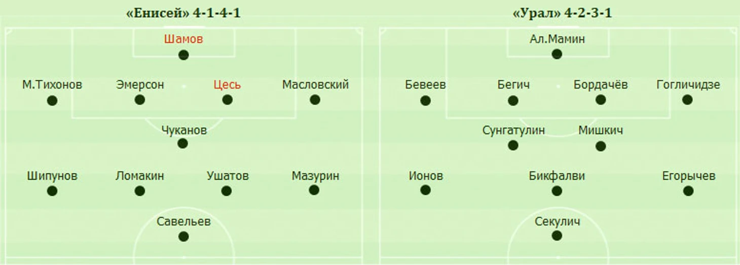 Перед матчем прошлого тура в Набережных Челнах «Урал» поменял шесть игроков стартового состава и, отлично проведя первый тайм, победил 2:0. В Красноярске «шмели» вписали в стартовый протокол те же 11 фамилий и были разгромлены с результатом 0:3…