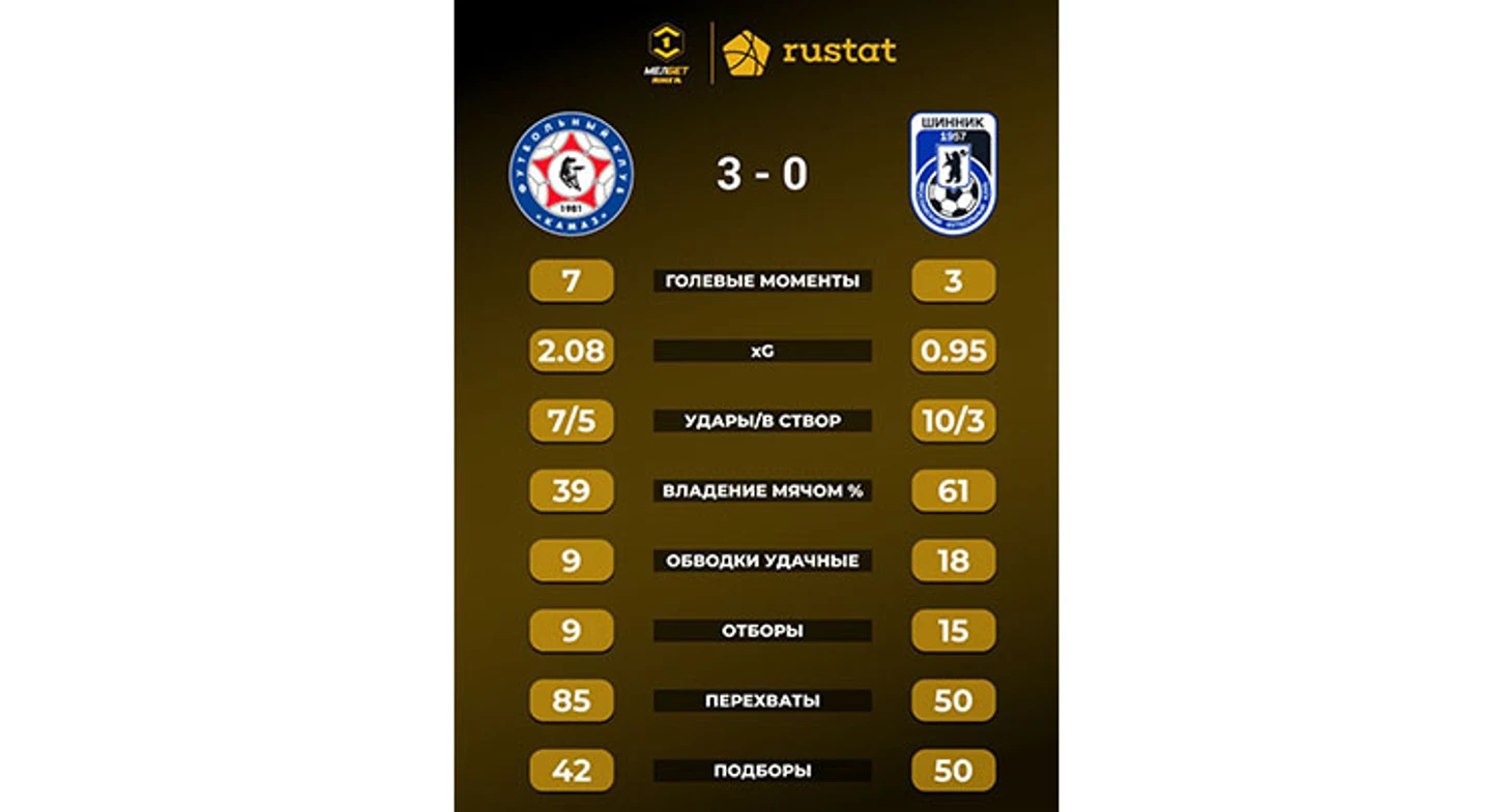 ● «Шинник» терпит на поле «КАМАЗА» второе кряду поражение с крупным счётом – в прошлый раз было 0:4. ● «КАМАЗ» прервал серию «Шинника» из семи матчей без поражений. ● В семи матчах подряд с участием «КАМАЗа» голы забивает только одна команда.