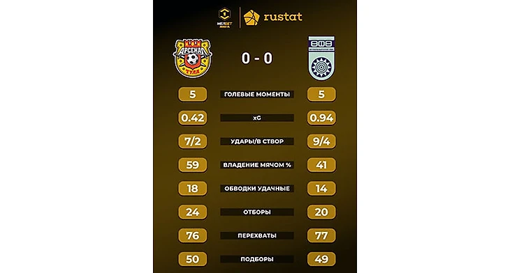 ● «Арсенал» - лидер сезона по количеству «сухих» матчей: девять из 12 возможных. ● Второй раз подряд «Арсенал» сыграл со счётом 0:0. ● Беспроигрышная домашняя серия туляков в первенстве страны увеличилась до 20 матчей. ● «Арсенал» - лучшая команда лиги по количеству очков набранных во вторых таймах (26 из 36 возможных) и занимает предпоследнее место по количеству очков, набранных в первых таймах (11 из 36 возможных),