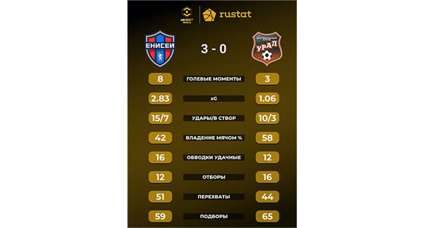 ● «Енисей» впервые в истории нанес «Уралу» поражение с крупным счётом.