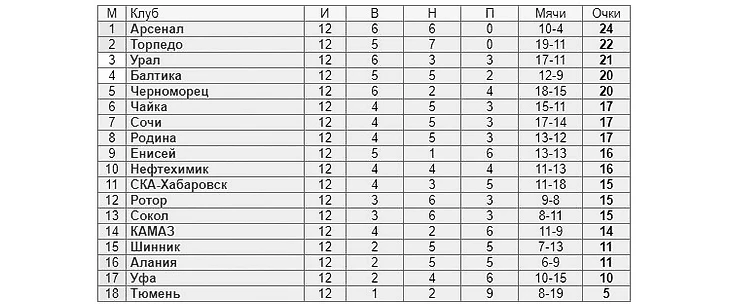 Первая лига, итоги 12-го тура: «Торпедо» обгоняет «Урал», «Арсенал» дарит очки аутсайдеру, «Балтика» заходит в топ-4