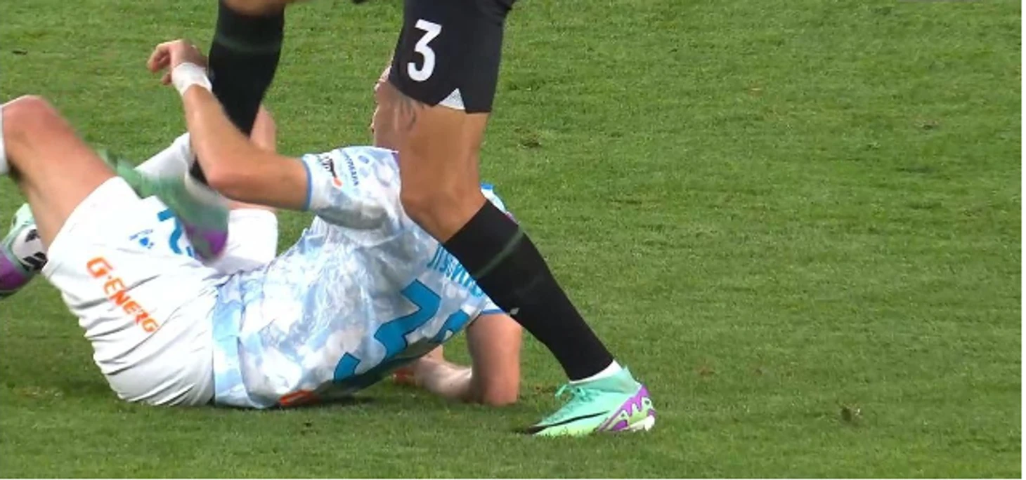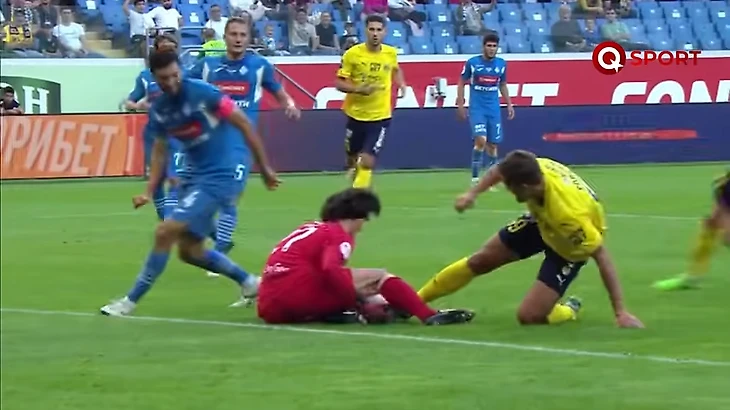 Здесь игрок Ростова сделал даже более явное нарушение - он сначала чуть прихватил соперника, а потом - еще и толкнул в спину. Почему «принципиальные» руководители Ростова забыли, что в этом моменте Карасев тоже не зафиксировал фол? Хотя конечно, ЖК по Правилам должны были быть предъявлены и Сакко, и Пальцеву, но - и Голенкову. Карасев просто «поднял допустимую планку» в борьбе, чтобы самые прессингующие команды РПЛ не захлебнулись от свистков за незначительные контакты - даже при таком допуске силовой борьбы было 28 штрафных. А сколько бы их было, фиксируй Карасев все незначительные контакты? За 40, как в игре 10 тура в Воронеже?