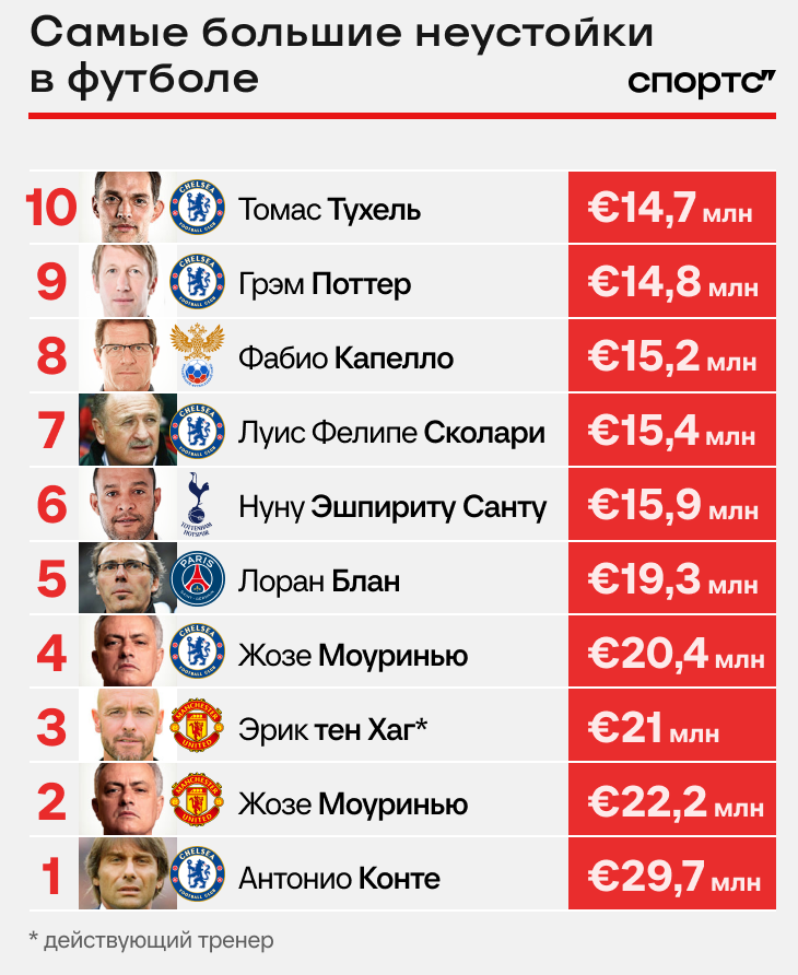 Если все и правда случится, Тен Хаг расположится на третьем месте в топе неустоек.