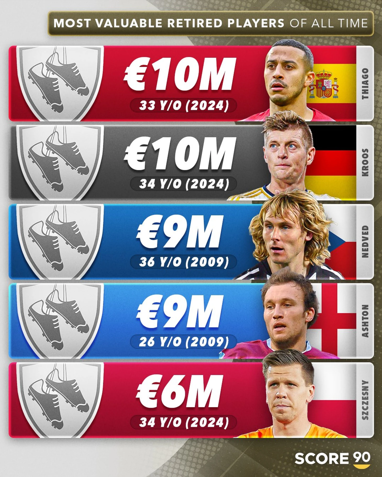 Они ушли с высокоподнятой головой и стоимостью: топ-10 самых дорогих игроков на момент выхода на пенсию⌛️💰
