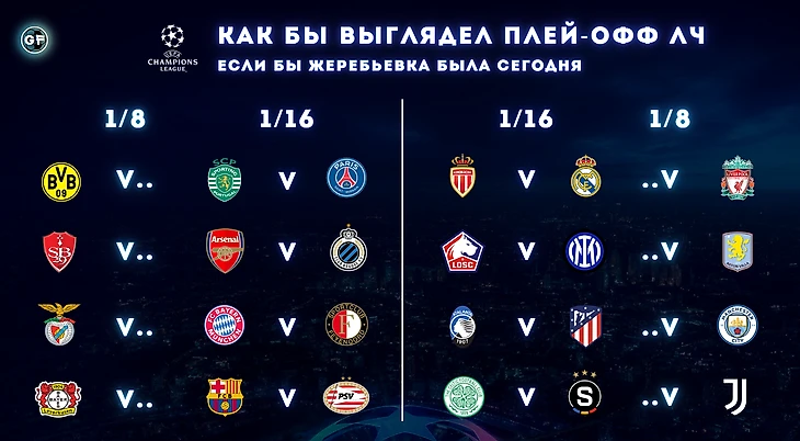 Как бы выглядел плей-офф ЛЧ, если бы жеребьевка была сегодня