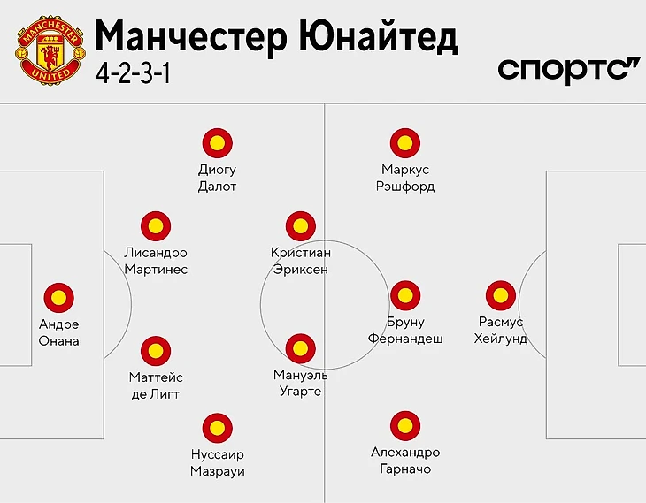 Линия обороны оптимальная. В полузащите понадобится мощное разрушение и контроль: дуэт Кристиана Эриксена и Мануэля Угарте выглядит сбалансированным для этой задачи.