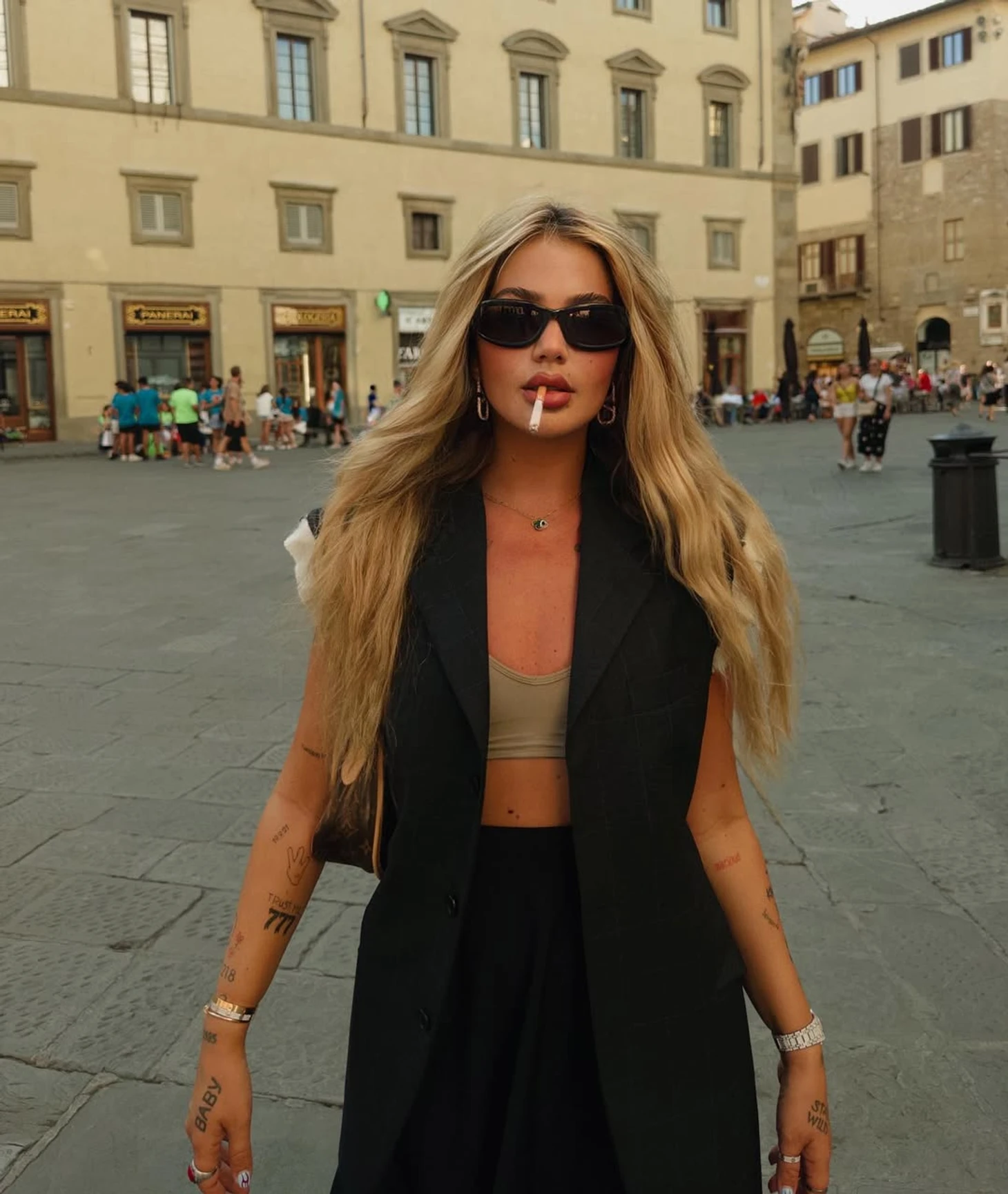 Лоредана – известная хип-хоп-исполнительница. В 2018 году она выпустила дебютный сингл «Sonnenbrille»: сейчас у клипа на этот трек более 69 млн просмотров на ютубе. Там же у Лореданы два видео с песнями по 100 млн просмотров, а всего на канале полтора млн подписчиков и почти миллиард просмотров. Уровень!