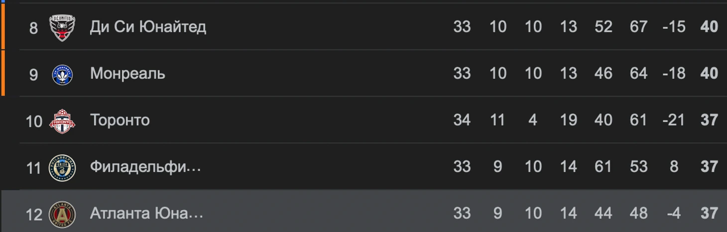 Зафиксируем: для выхода в стыки за плей-офф «Атланте» нужно побеждать самим и ждать поражений «Ди Си» и «Монреаля» – в таком случае команда выйдет за счет лучшей разницы. Если проиграет только одна из вышеназванных команд, нужно надеяться еще и на осечку «Филадельфии».