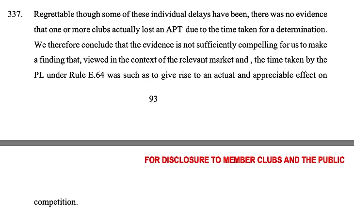 При всем при этом, комиссия не считает (пункт 184), что у Премьер лиги не было оснований принять новые правила и вносить поправки в ФФП. То есть, арбитраж говорит, что в действиях Премьер лиги был резон.