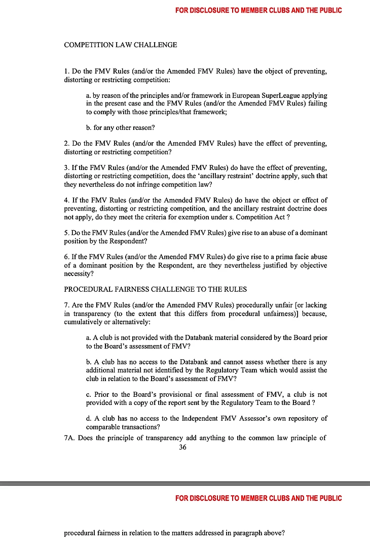 Эти вопросы – самые важные, поскольку они исследуют природу правил АРТ, основной фокус как Ман Сити, так и АПЛ, был направлен на эти пункты. Победа Сити по этим пунктам означала бы, что правила нарушают соревновательный дух, и, соответственно, их необходимо пересмотреть.