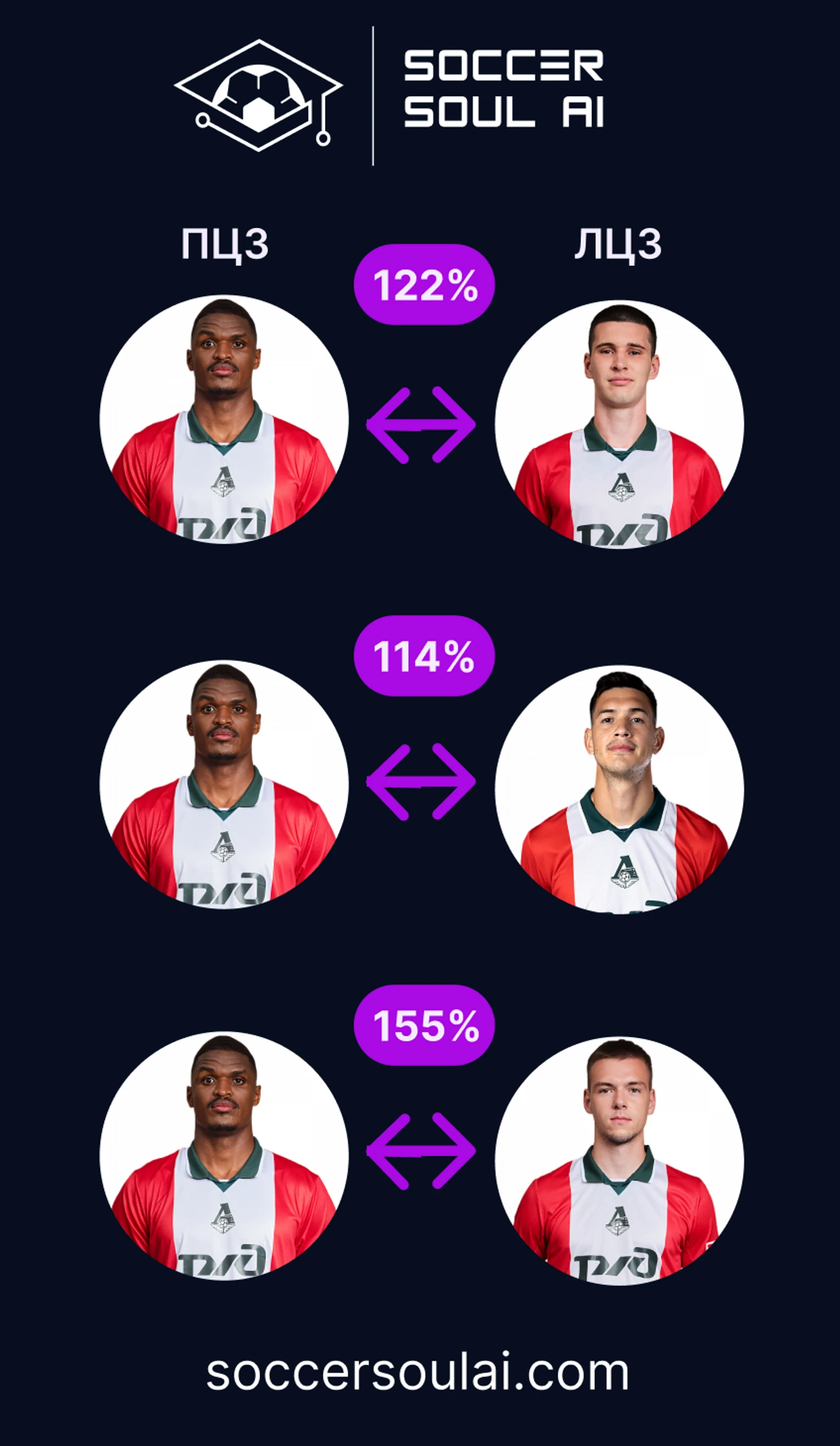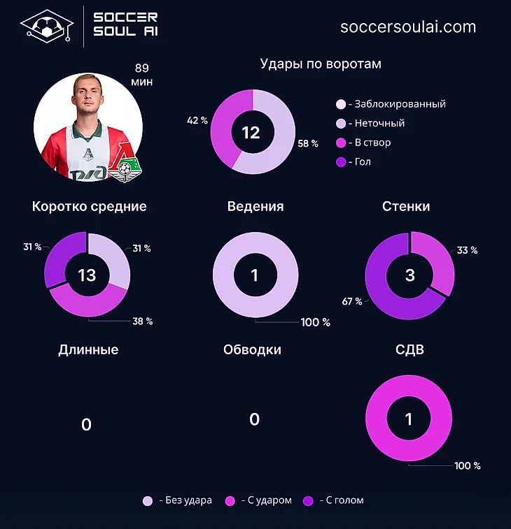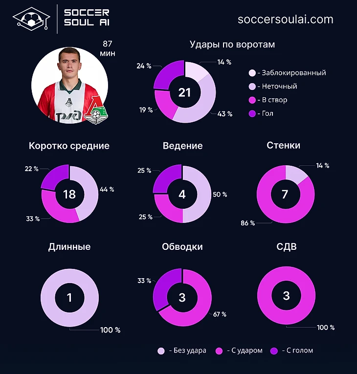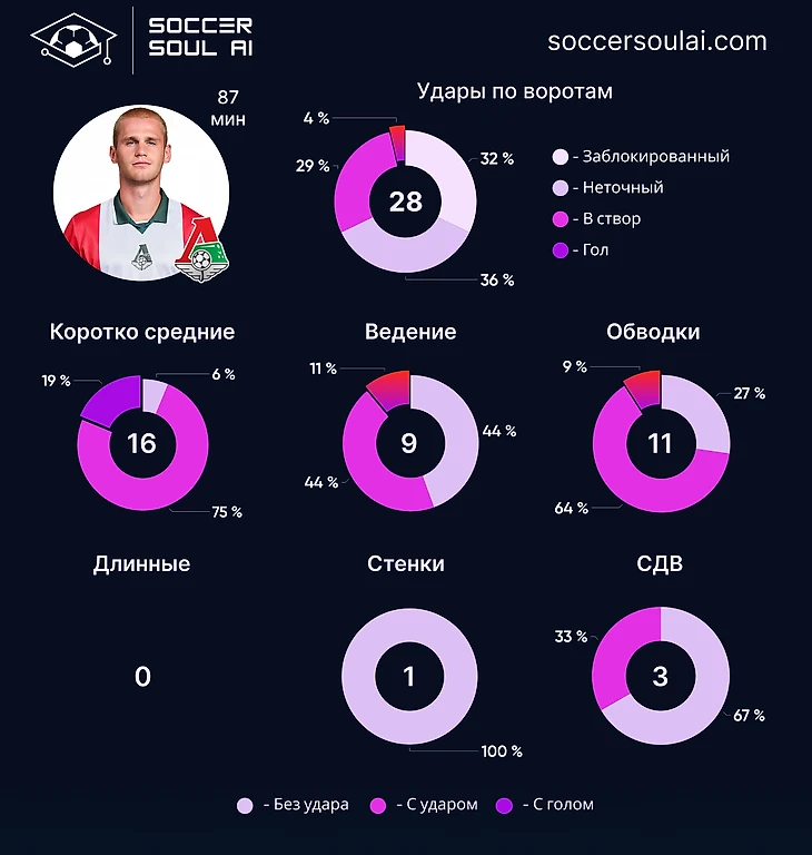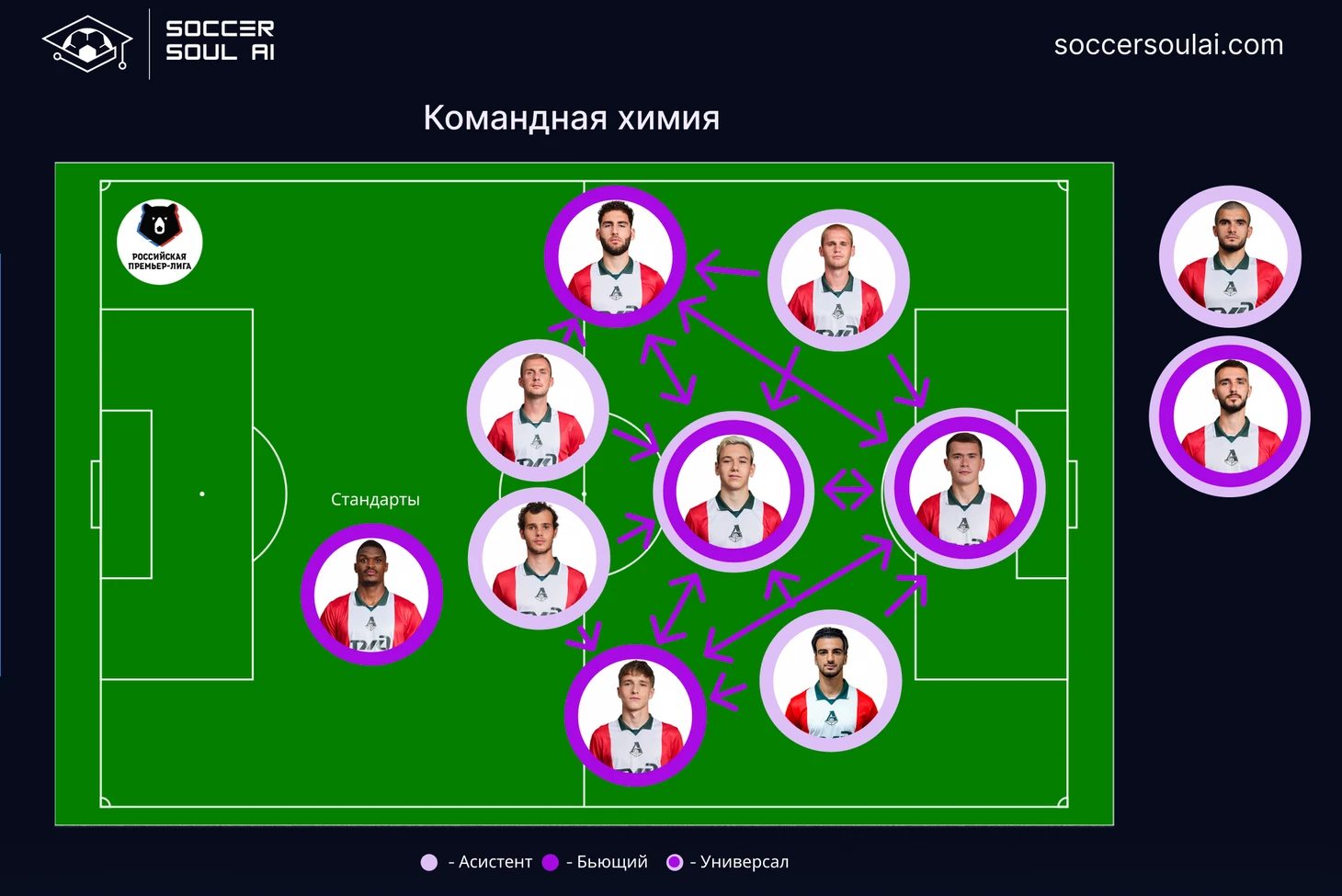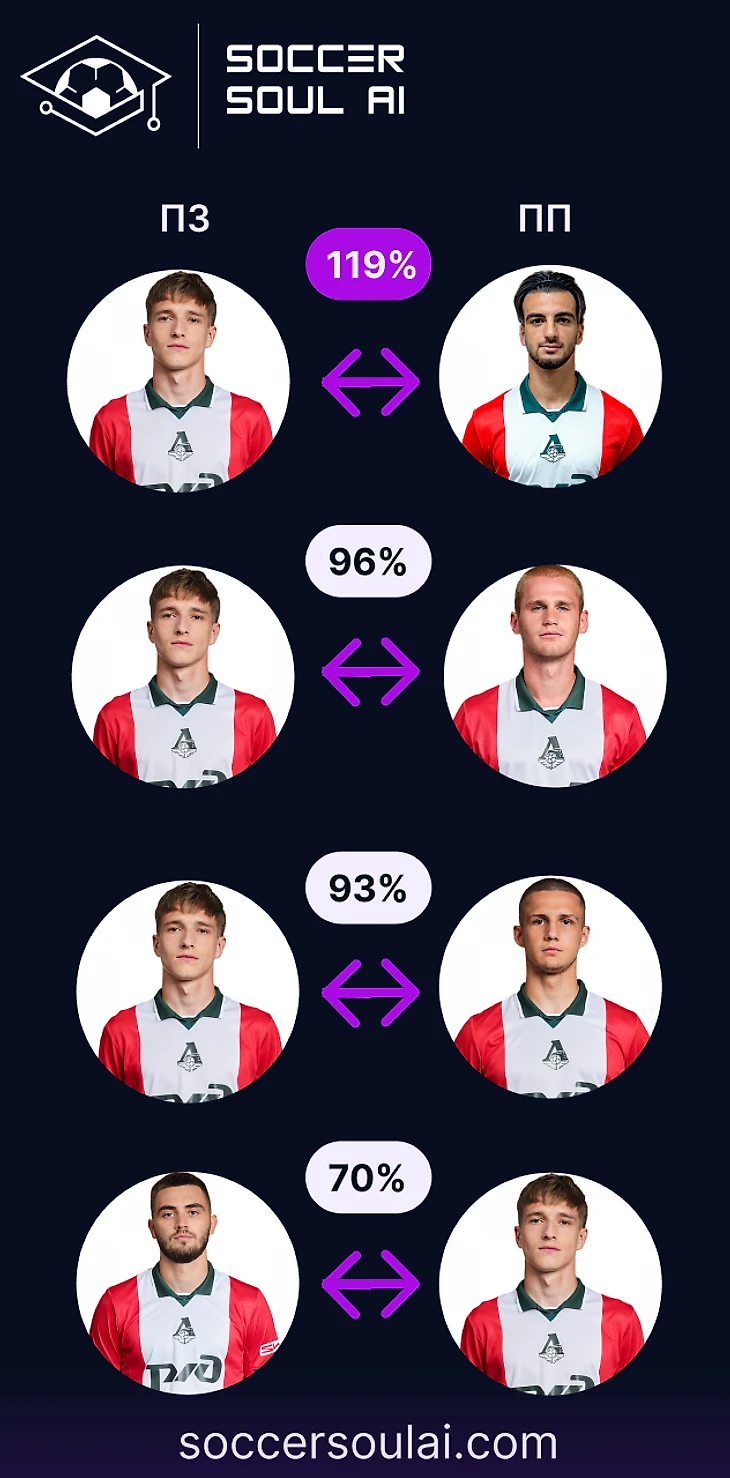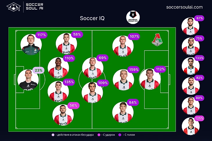 Три центральных защитника со стабильно высоким Soccer IQ позволяют Локомотиву быть достаточно вариативным в плане командного показателя качества игры.