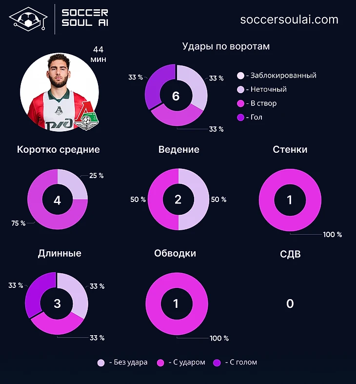 Высокая доля Soccer IQ опорных полузащитников имеет любопытную детализацию действий. На двоих у Баринова и Карпукаса участие в семи голевых комбинациях.
