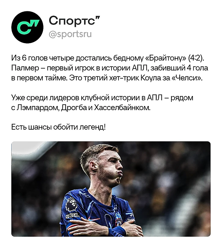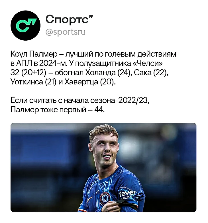 Коул Палмер мощно начал сезон – да-да, снова! После яркой кампании-2023/24 лидер «Челси» не остановился: Коул делает все, чтобы не ограничиться наградой лучшему молодому игроку АПЛ.