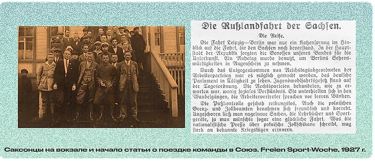 19 мая 1927 года среди прочих иностранцев со ступеней Александровского (на тот момент уже Белорусско-Балтийского) вокзала сошли футболисты рабочей сборной Саксонии. На площадь Тверской заставы ступили подошвы немецких футболистов из Дрездена, Лейпцига и Кемница.