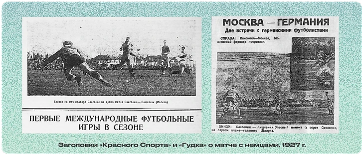 Единственным крупным футбольным событием мая, о котором писали даже в «Правде» и «Известиях», был приезд из Германии футбольной сборной Саксонии. Даже родной для Ильфа-и-Петрова «Гудок» оповестил своих читателей о приезде немцев и подробно рассказал о противостояниях на футбольном поле. Такое масштабное событие в футбольной жизни столицы не могло пройти мимо авторов романа. Ко всему прочему, на первой полосе «Красного Спорта» от 29 мая 1927 года красуется крупный заголовок, любопытно перекликающийся с препарируемой нами цитатой – «Первые международные футбольные игры в сезоне. Москва – Саксония».