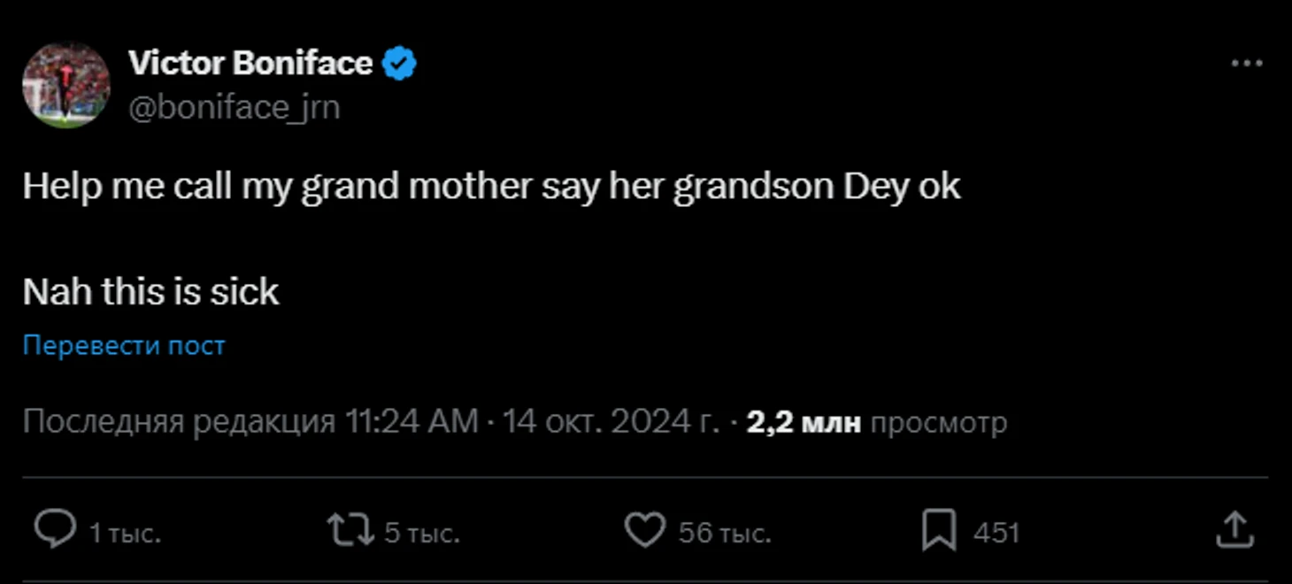 Все игроки сборной были шокированы ситуацией, но особенно трогательно отреагировал Виктор Бонифасе. Он попросил помощи у болельщиков: