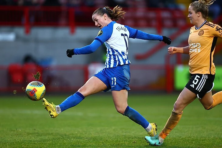 А в 2022-м Терланд перешла в «Брайтон», где начала с пяти голов в шести матчах. В прошлом сезоне она забила половину голов команды (13 из 26), разделив второе место в гонке бомбардиров лиги с Лорен Джеймс (сестра капитана «Челси» Риса Джеймса). Вот почему за забивной норвежкой пришел «МЮ», лучший снайпер которого в прошлом сезоне забила восемь голов.