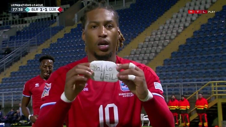 Нападающий после гола достал щиток с надписью «Balilo Leila». Какое-то личное послание.
