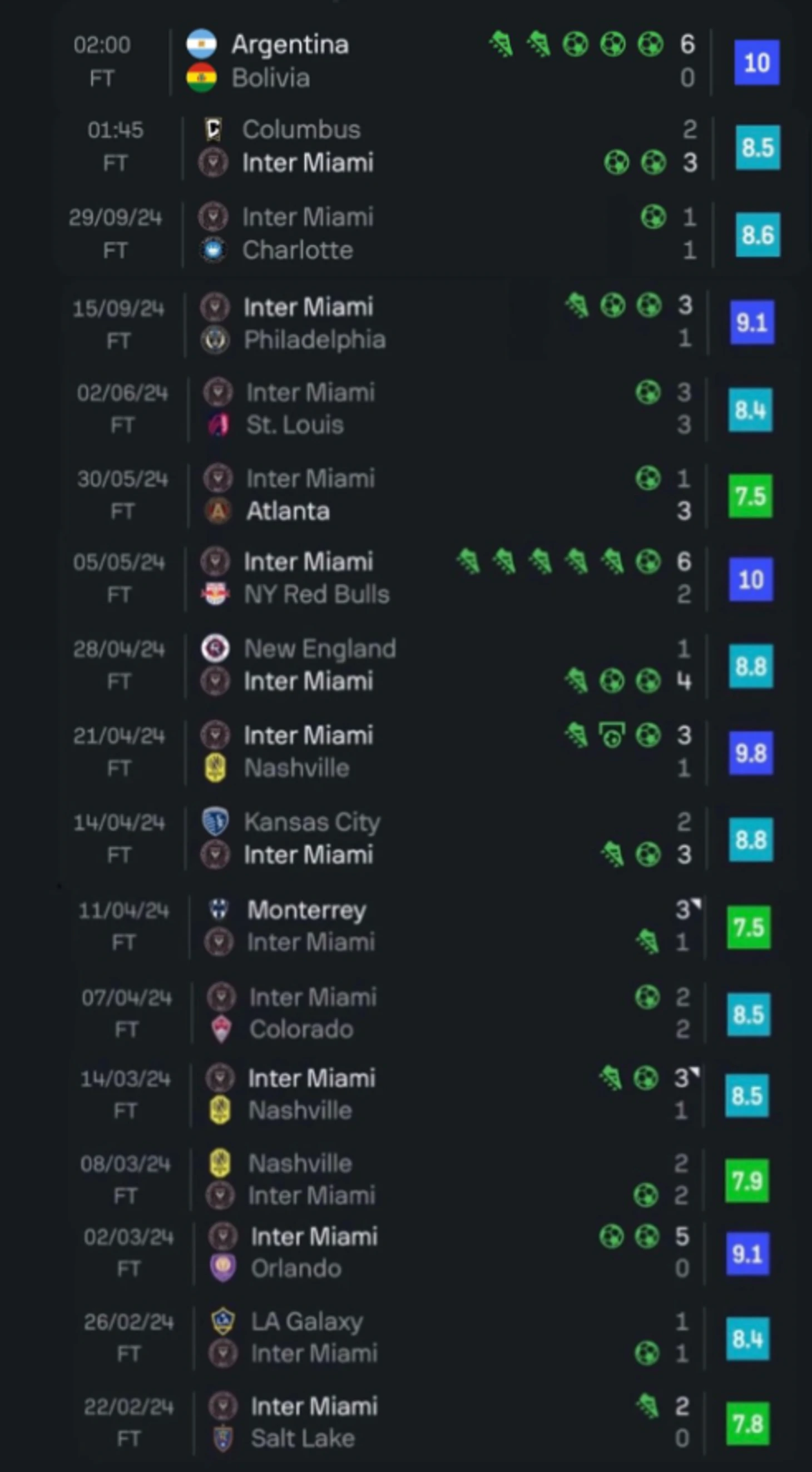 У Месси отличная форма в 2024 году - он забивал голы почти в каждом матче, в котором принимал участие: