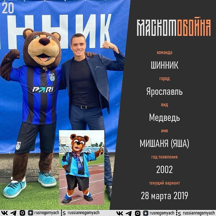 Тут все логично - на гербе города медведь, символ города медведь, легенды рассказывают о медведе. Первый выглядел крипово, имя ему дали по Ярославскому шинному заводу, новый все же лучше по исполнению