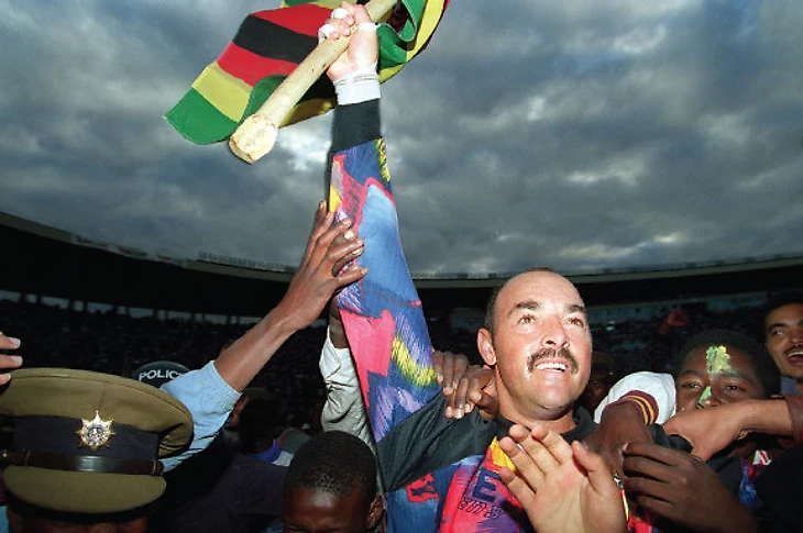 Я вернулся в Зимбабве, чтобы сыграть матч сборной, и он совпал с крикетом, так что в выходной день я коротал время на границе поля, поедая мороженое. Мугабе сидел в роскошном кресле вместе с Алвином Пичаником и Питером Чингокой, президентом и вице-президентом Союза крикета Зимбабве. У меня было озорное настроение, и я закричал,