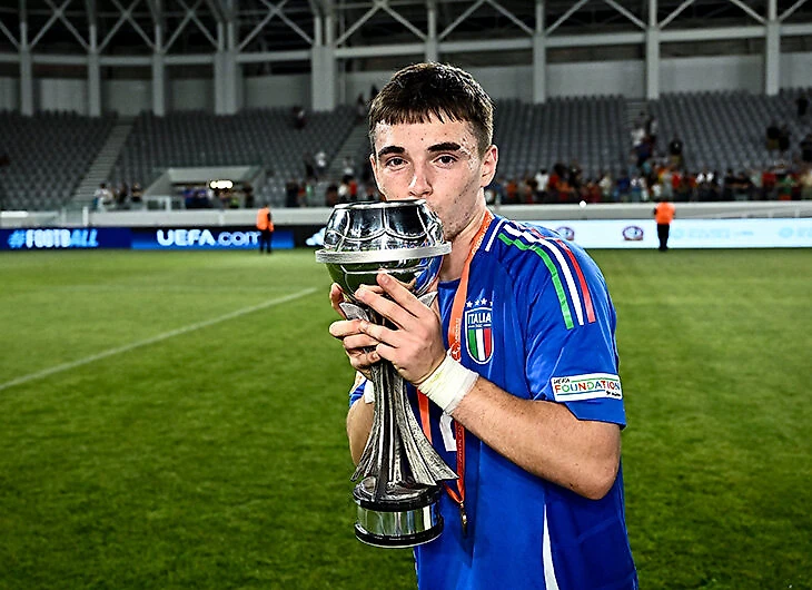 Правый защитник родился в Бразилии, в 11 лет с семьей переехал в Испанию, а в 2024-м выиграл Евро U-17 за сборную Италии. И вошел в символическую сборную турнира. От итальянцев там еще были Маттиа Либерали («Милан», тоже в списке Guardian), Франческо Камарда («Милан», будет в списке через год) и Кристиан Кама («Рома»).