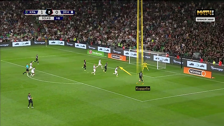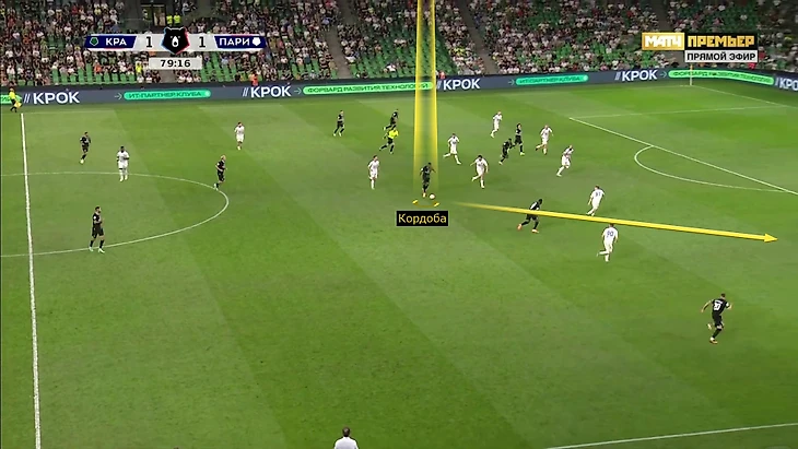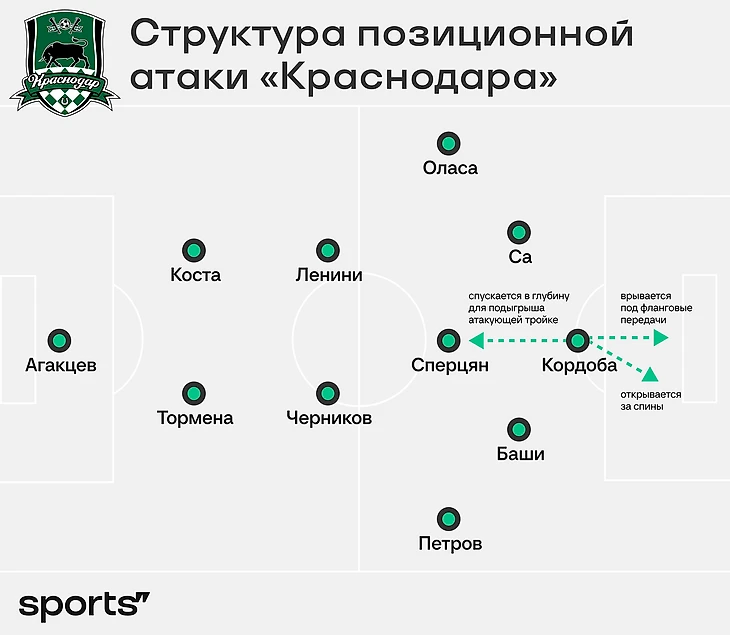 Благодаря разнонаправленности «Краснодара» движение Кордобы непредсказуемо: атакует с линии вратарской при кроссах со стандартов и с игры, бьет из полуфлангов в быстрых атаках и наказывает после высоких отборов.