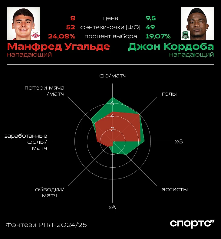 В 11 играх у Манфреда Угальде шесть голов, больше в РПЛ забили только Максим Глушенков и Алексей Батраков (по семь). Угальде – третий по популярности нападающий в фэнтези (23,59%) после Константина Тюкавина и Мирлинда Даку, дисквалифицированного на 12-й тур.