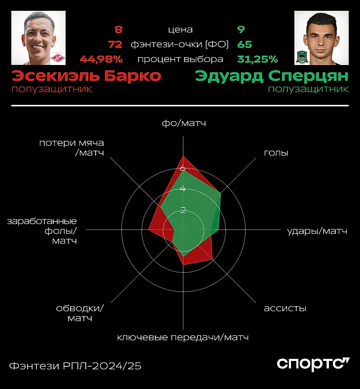 Полузащитники: Эсекиэль Барко vs Эдуард Сперцян