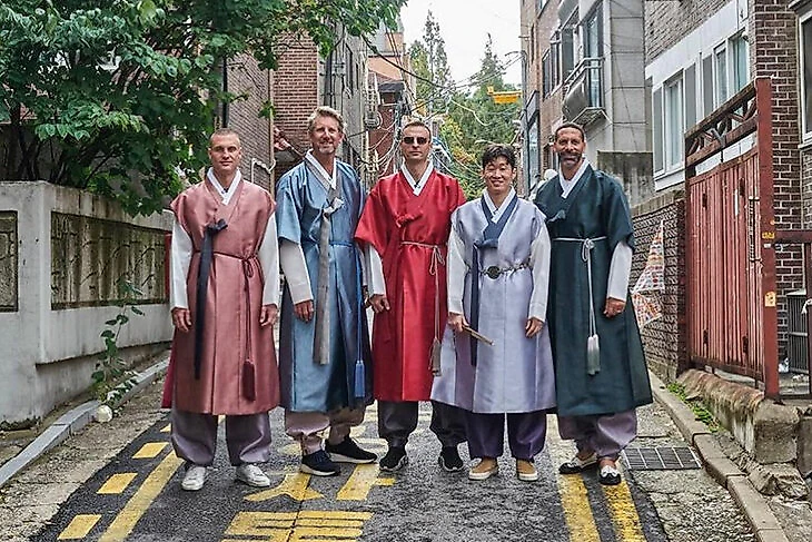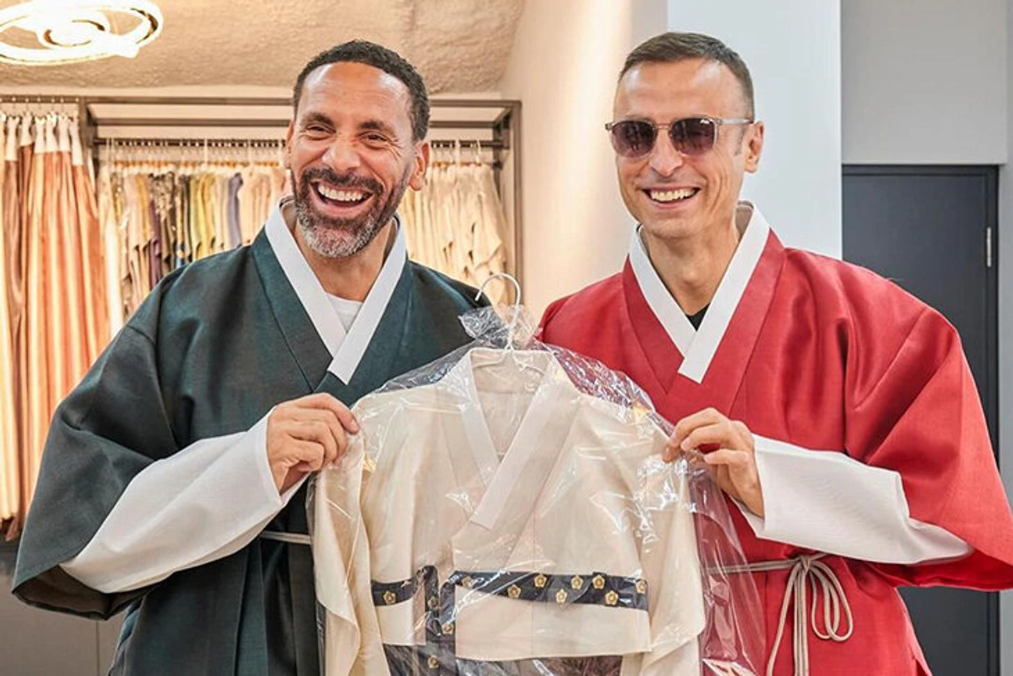 А бывшие звезды «МЮ» Эдвин ван дер Сар, Рио Фердинанд, Неманя Видич и Димитар Бербатов посетили местный магазин, где примерили на себя национальный костюм – ханбок.