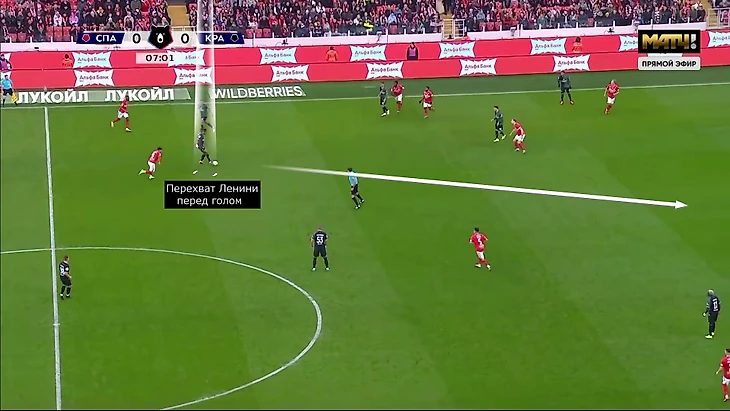 У «Спартака» не получалось выходить на чужую половину: круто доигрывали опорники по Кристоферу Мартинсу и Эсекиэлю Барко, поджимали края, чистили рывки за спину, периодически все заканчивалось аутами.
