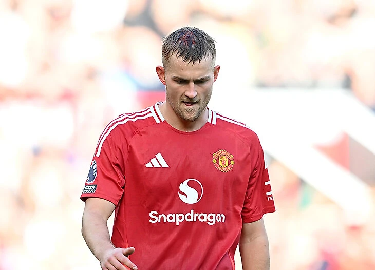 Голова Де Лигта сразу же покрылась кровью. Врачи «Юнайтед» сразу же увели Маттейса за боковую и остановили кровь в первый раз.