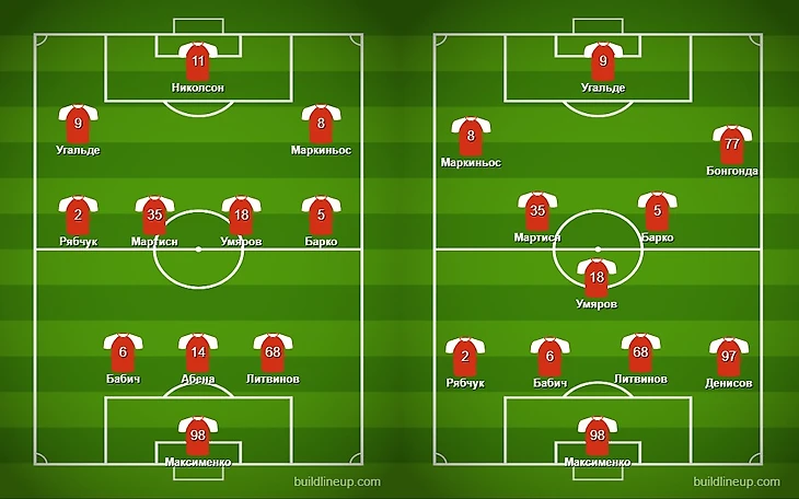 Краснодар вышел в привычном составе, который продолжает показывать стабильную игру в чемпионате. Спартак же удивил своего оппонента об этом признался Мурад Мусаев: «Не ожидали схемы с 3 защитниками, ребята молодцы, быстро сориентировались. Но «Краснодару» много в чем нужно прибавлять». Москвичи вышел по схеме в 3-4-3, но команда Мурада Олеговича смогло быстро перестроится.